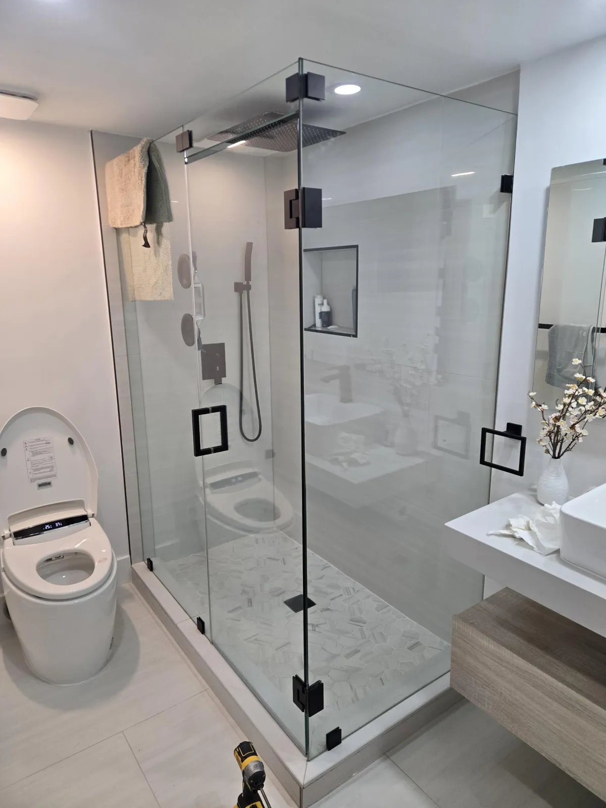 We recently completed a full bathroom remodel, and I couldn’t be happier with the results. The scope of work was extensive they moved walls, relocated and re-piped the shower to a completely different location, built new walls, and installed glass features and everything was done with precision and care.